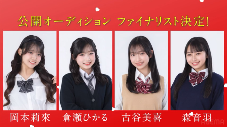 その今日好き公開オーディションのファイナリスト4名が決定しましたので、以下に記載しました。