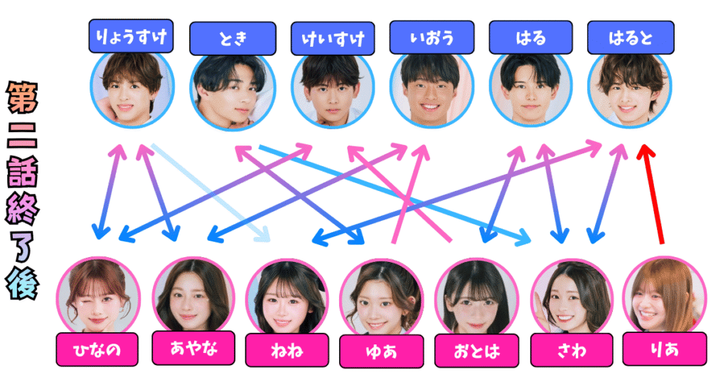 (以下の相関図を変えていませんが、後々考え、あやなはりょうすけに告白しそう)