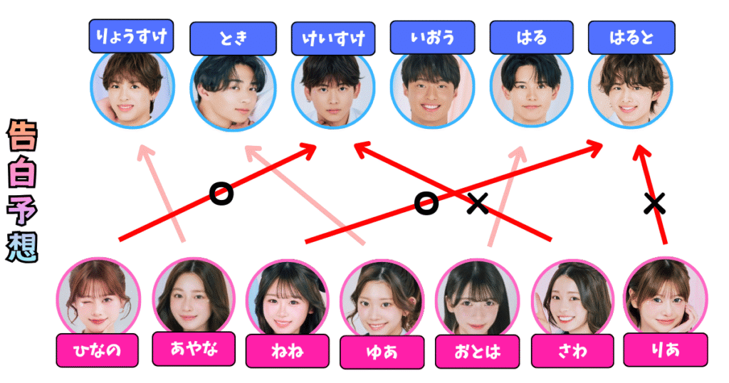 筆者が考えた告白予想と成立結果です。